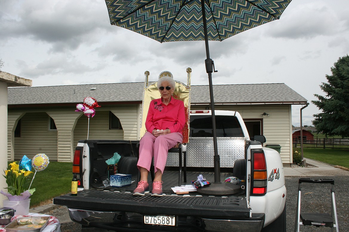 She got her own special chair in the bed of a pickup, above the crowd. “So she could see and be seen,” Scriven said.