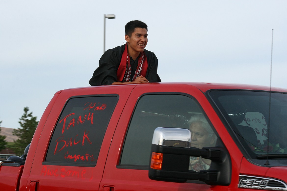 Cheryl Schweizer/Columbia Basin Herald The Wahluke High School class of 2020 celebrated graduation in a unique fashion, with a car parade through Mattawa and extra precautions when they picked up their diplomas.