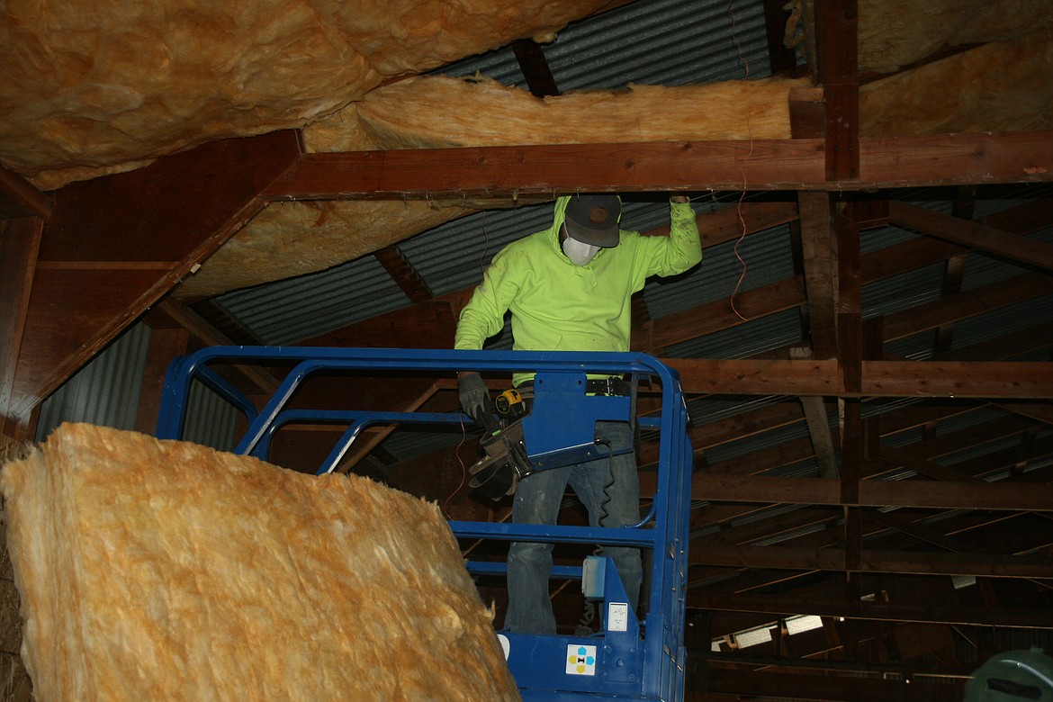 MOSES LAKE — Construction crews were installing insulation in the Agriculture Building at Grant County Fairgrounds on Tuesday in one of a number of projects underway or near completion at the fairgrounds.