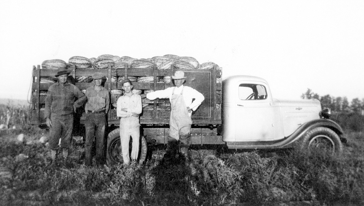 While Driggs and Sons concentrated on potatoes, they raised other crops. “I remember the wonderful smell of mint growing in the fields and the harvesting of very large watermelons. During harvest time my dad would ‘accidentally’ drop a melon from the back of the truck so my sister Bonnie and I could eat the heart of the melon. ‘Oops, I dropped one,’ he would say. On a hot day the melons really tasted delicious,” Driggs wrote.