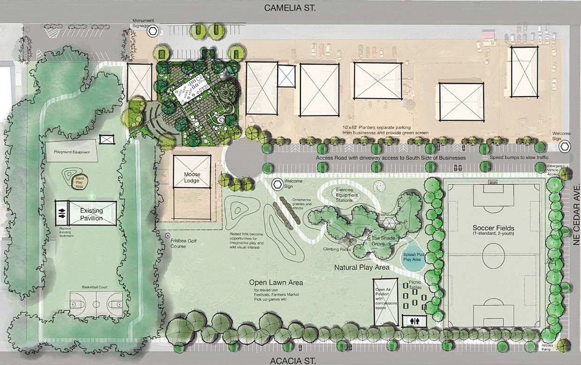 Starting in fall of 2018 and throughout 2019, the city of Royal City invited the community to provide feedback into possible locations for a new library, as well as new attractions for the park. The Park and Recreation Plan was created in response to those meetings. The plan includes provisions for a regulation-size soccer field, picnic areas, a splash pad and other amenities. The plan also includes new public toilets at the existing park pavilion and a paved alley between Camelia and Acacia streets.