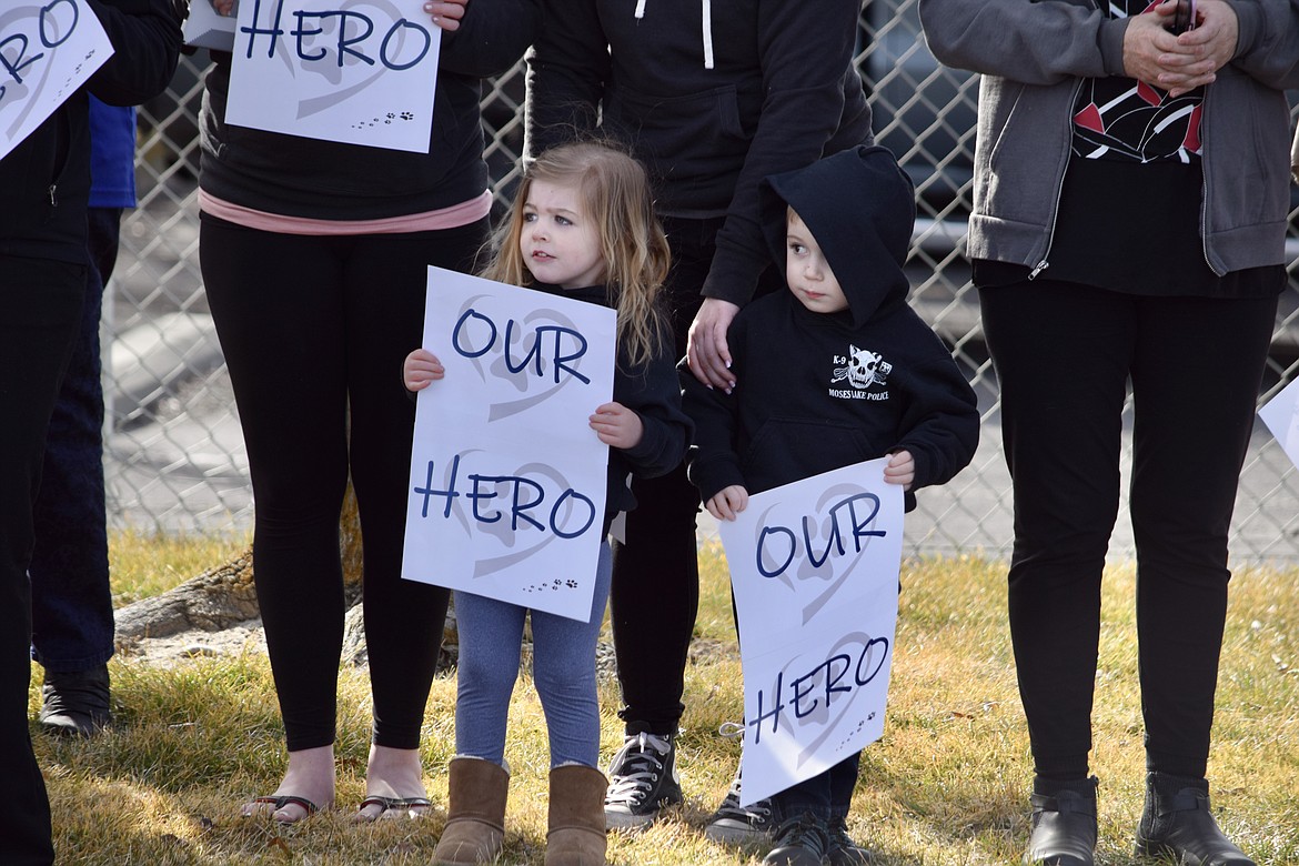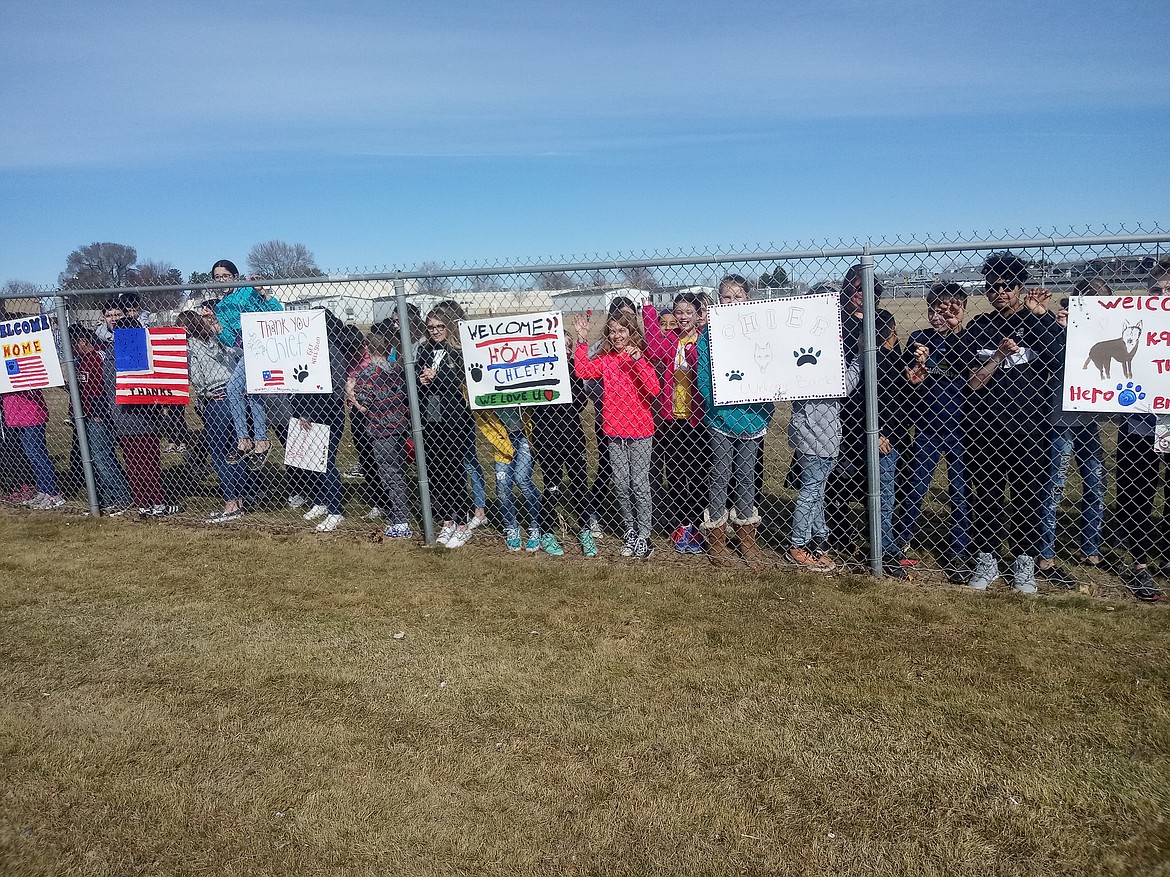 MOSES LAKE — Hundreds turned out Wednesday to welcome home wounded Moses Lake Police Department patrol dog Chief after he was airlifted to Pullman for emergency surgery Friday.