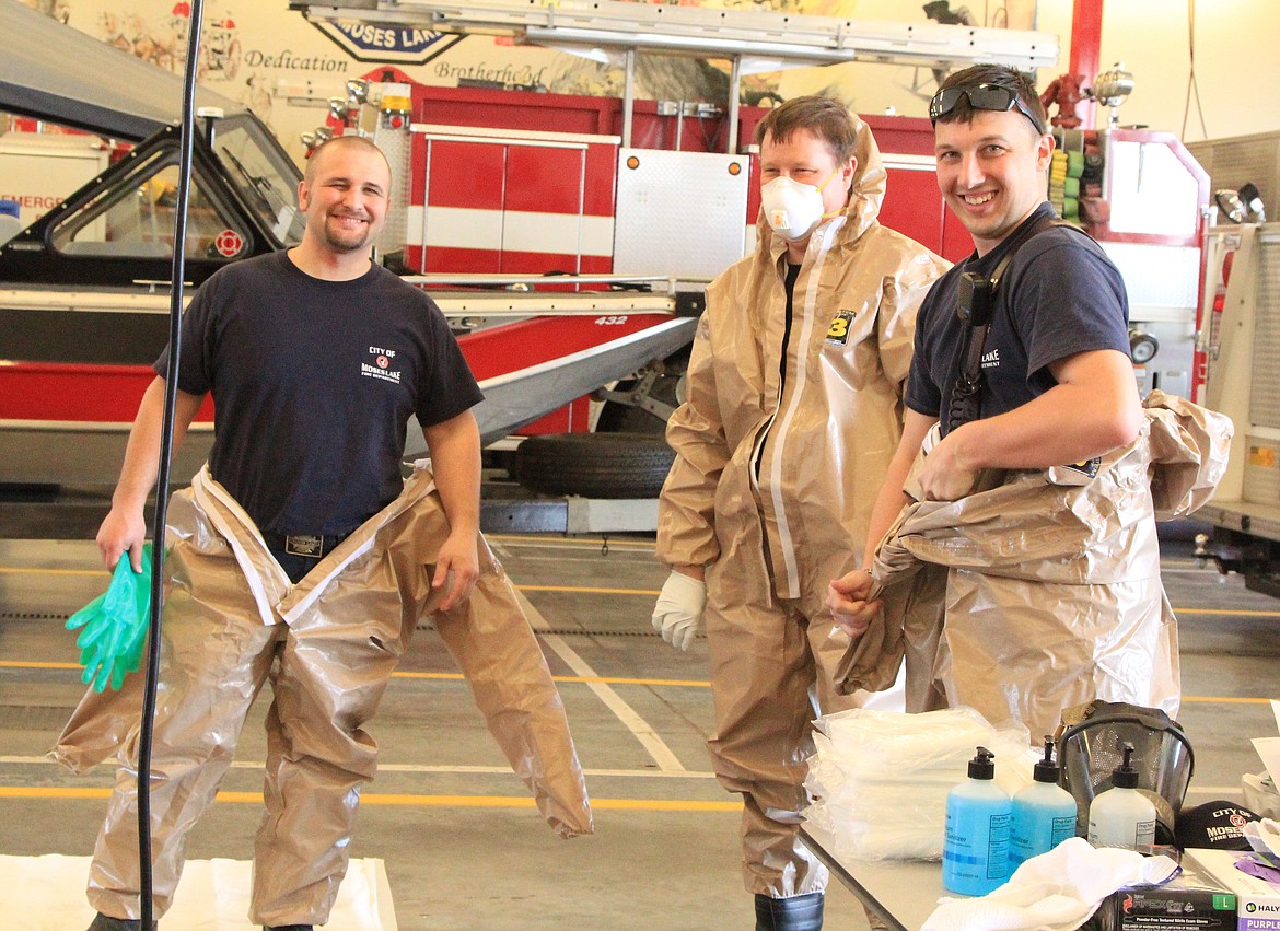 The hazmat suits are the same ones the firefighters would use if they were responding to a call involving dangerous chemicals, but today they’re being used to protect first responders from catching the highly contagious virus that has led to businesses shutting down across the state.