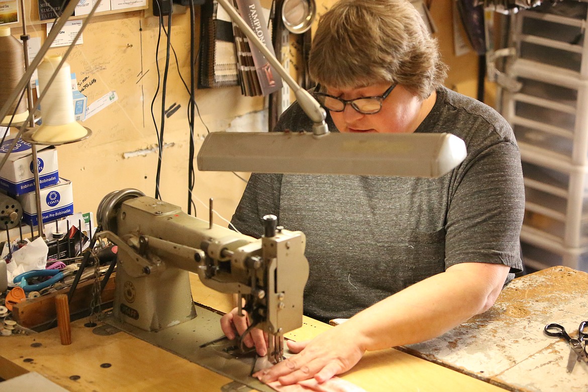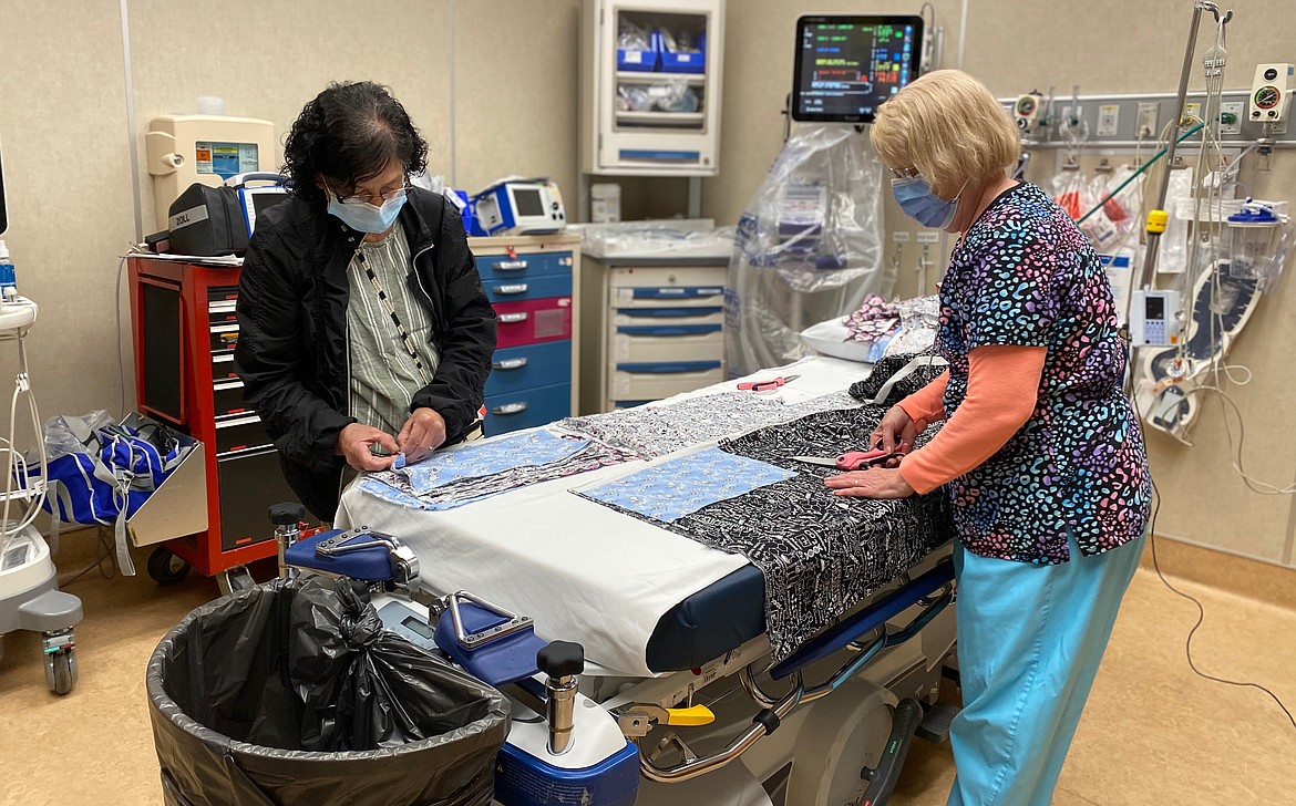 MOSES LAKE - In her shop a few miles out from town, Molly Gallaway sits amid small mountains of fabric rolls and thick spindles, slowly sewing pleats and ties onto pink cotton masks.