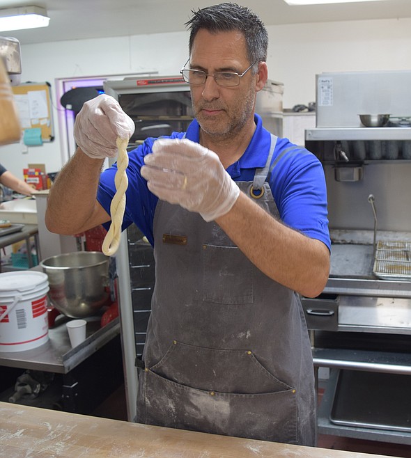 To make a day’s worth of donuts usually requires being up sometime between midnight and 2 a.m. to start making dough and frosting. All of Red Door’s donuts are hand-made, and the three Boormans — Rick, Lisa and their son Troy — are busy getting several batches made before they open their drive- thru and walk-up windows at 6 a.m.