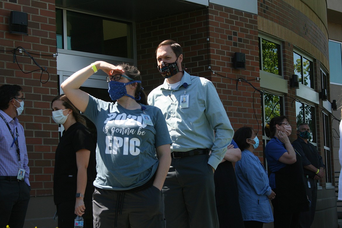 MOSES LAKE — Crews and aircraft from Fairchild Air Force Base showed their support for health care workers and first responders in Central Washington on Friday, with a flyover of a number of health care facilities including Samaritan Hospital.