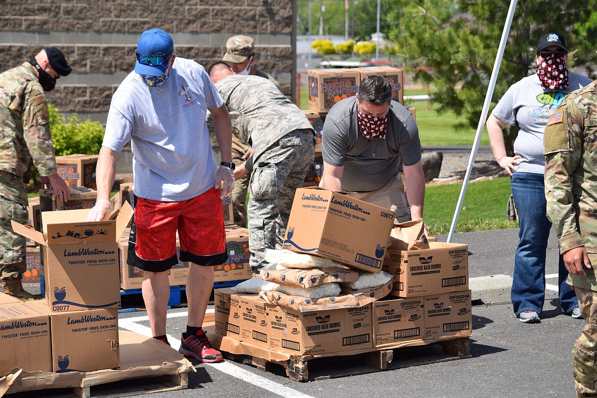 Working with the Eastern Washington food charity 2nd Harvest, the National Guard soldiers and airmen distributed 302 food boxes — complete with milk, fruit, vegetables, rice, noodles and apples — as well as hundreds more bags of frozen potatoes from Ore-Ida and Lamb Weston, according to Senior Master Sgt. Donald Belfils.