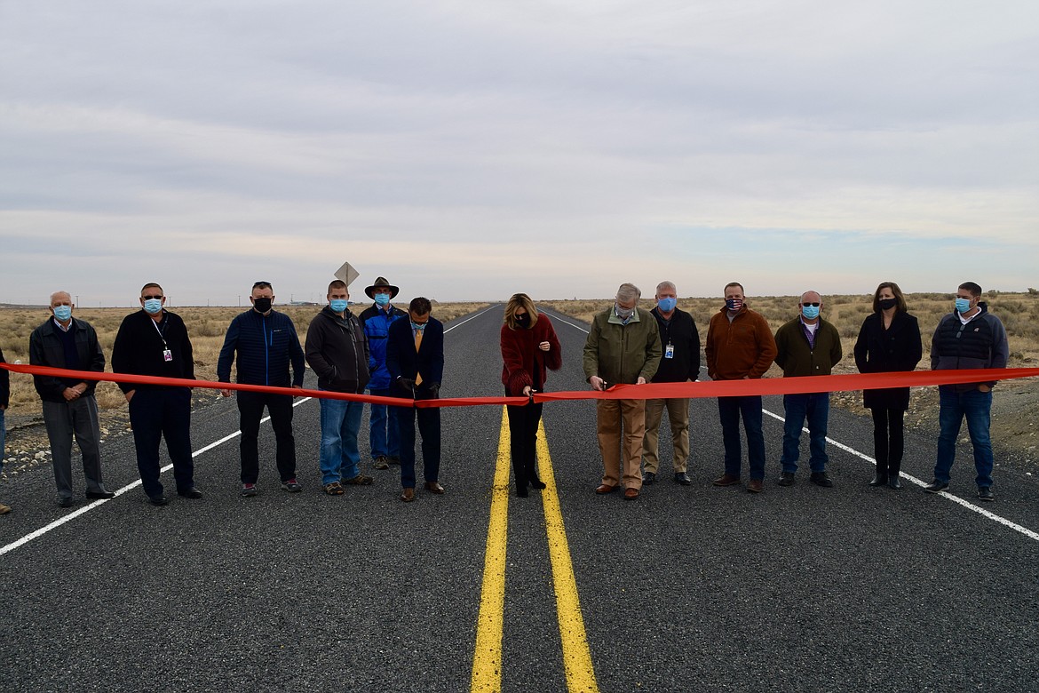 MOSES LAKE — On Wednesday afternoon, Grant County Commissioner Cindy Carter, Port of Moses Lake Commissioner Stroud Kunkle, and Moses Lake Mayor David Curnel cut the ribbon on Road G Northeast, making the port’s new Westside Employment Center a reality.