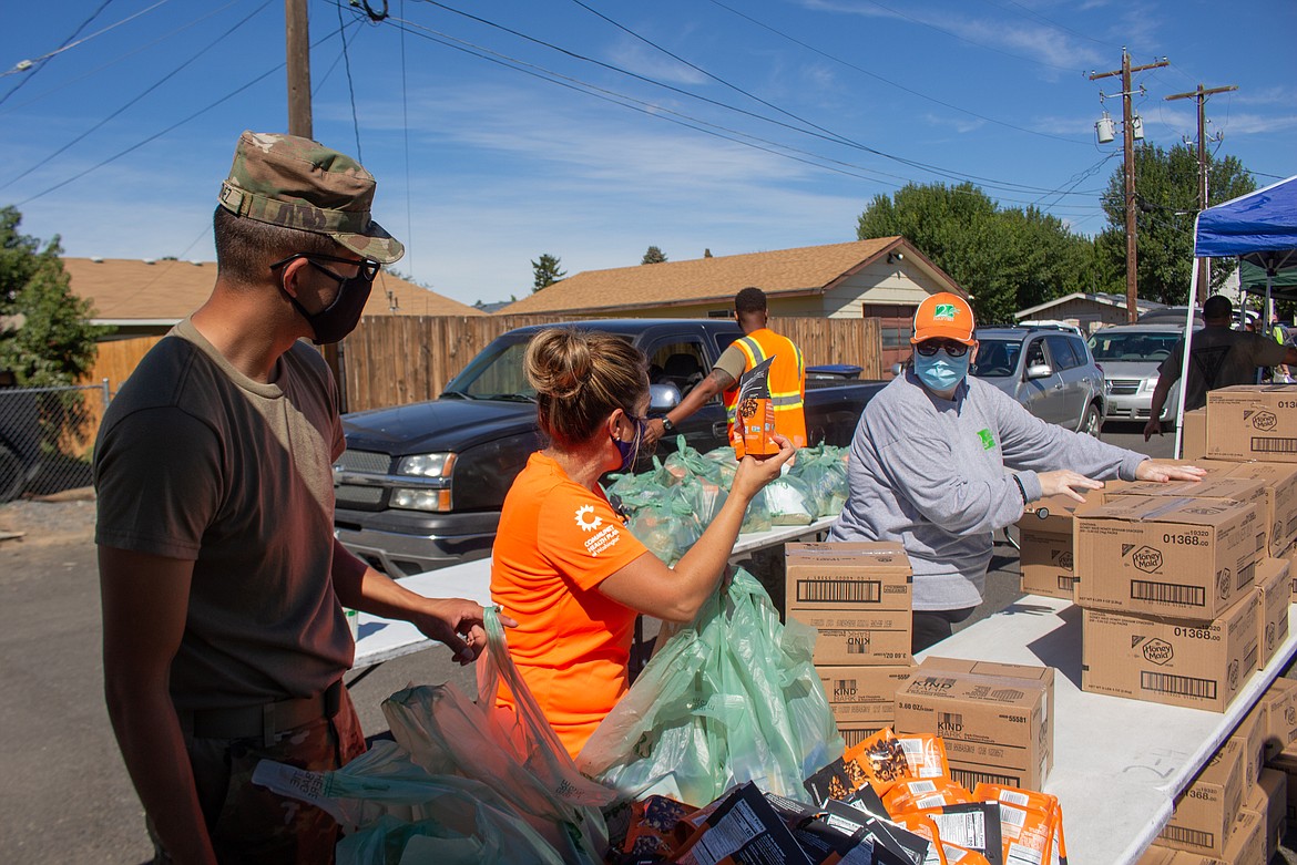 Normally, she said an army of volunteers would be working to help distribute food at the Mobile Market. This year, there was no need with Second Harvest Inland Northwest bringing a “literal army” with volunteers from the Army and Air Force National Guard out of Pasco.