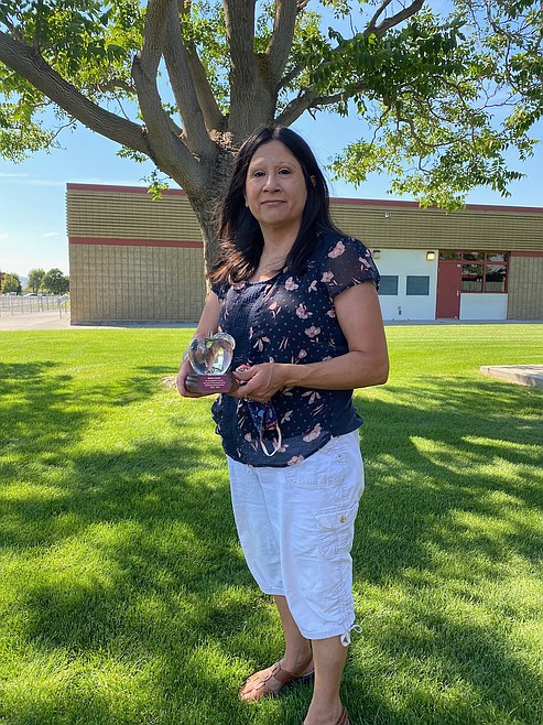 MATTAWA — After 30 years of service to the kids and community of the Wahluke School District in a number of different roles and at a number of different schools, staffer Alicia Cantu retired recently and was presented with the Crystal Apple Award by district officials.