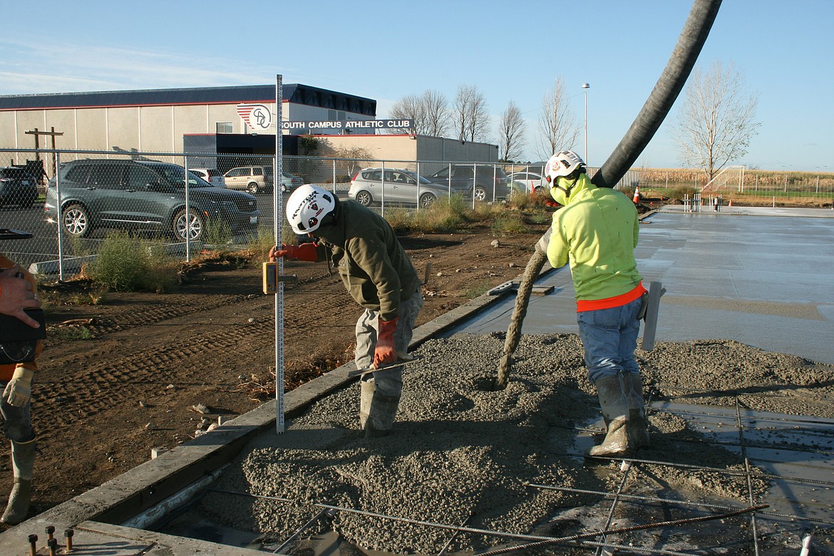 MOSES LAKE — After years of fundraising and preparation, the exterior walls of the new gym at the Moses Lake Christian Academy will be going up soon. Crews finished pouring the building’s concrete slab Thursday.