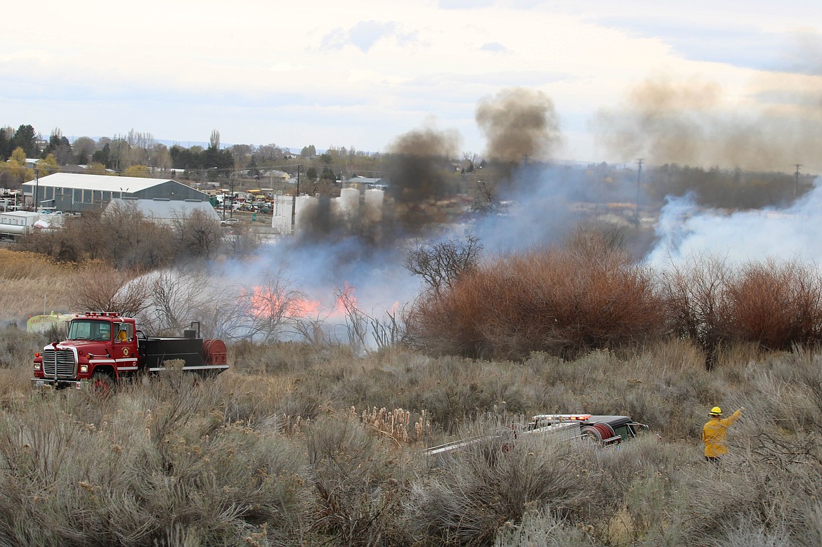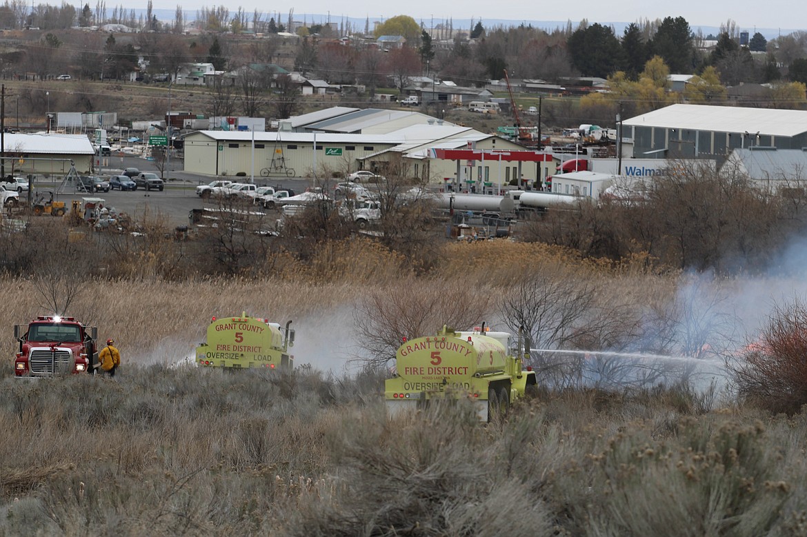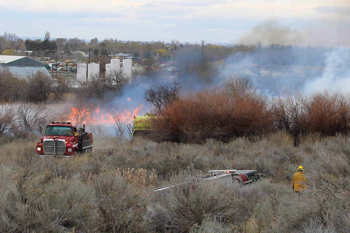 The Moses Lake Fire Department responded at about 1:45 p.m. Sunday to a brush fire in a field adjacent to the 800 block of Wheeler Road.