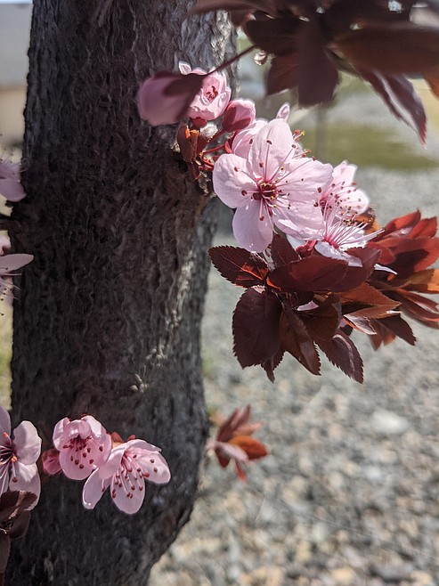 Cherry blossoms along West Valley Road in Moses Lake. Spring has arrived in the Basin, with warming temperatures.
