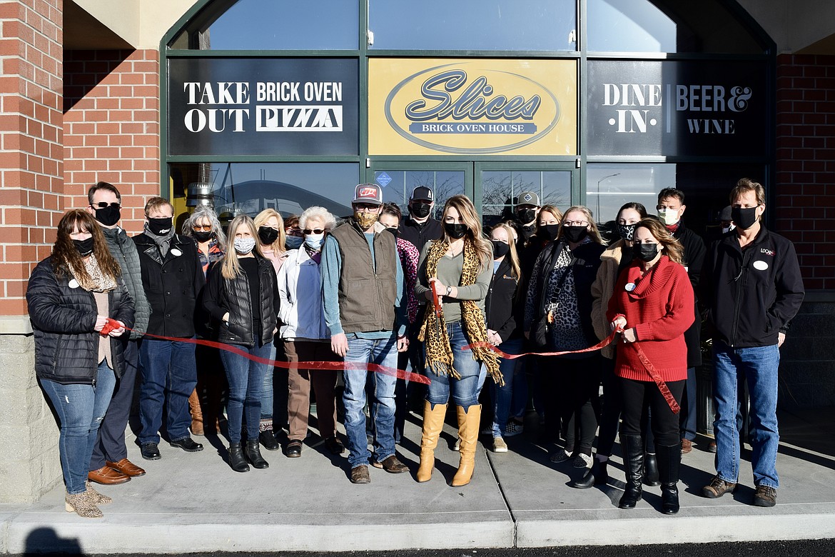 Slices Brick Oven House owner Bailey Jasper cuts the ribbon on her newly christened restaurant in Moses Lake.