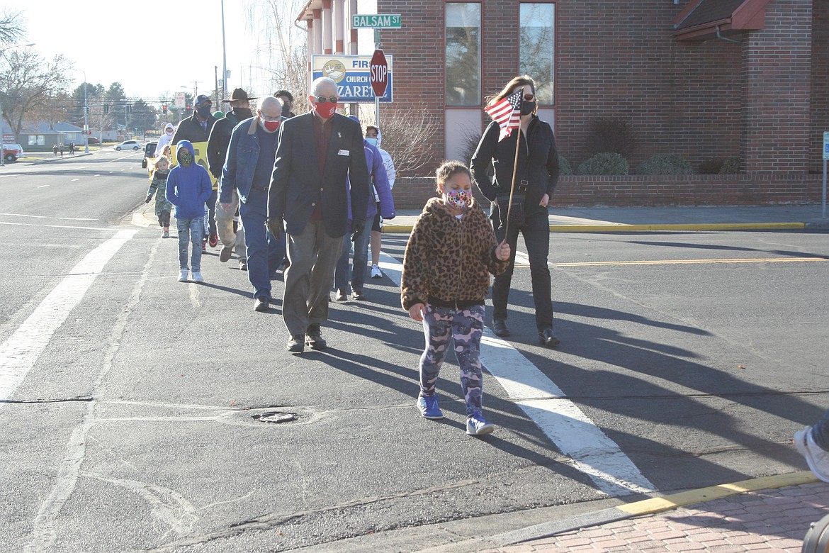 MOSES LAKE — Between 85 and 90 people came on a sunny, but windy Monday, to commemorate the legacy of Martin Luther King Jr., with a march and the traditional rendition of King’s, “I Have a Dream,” speech on Martin Luther King Jr. Day.