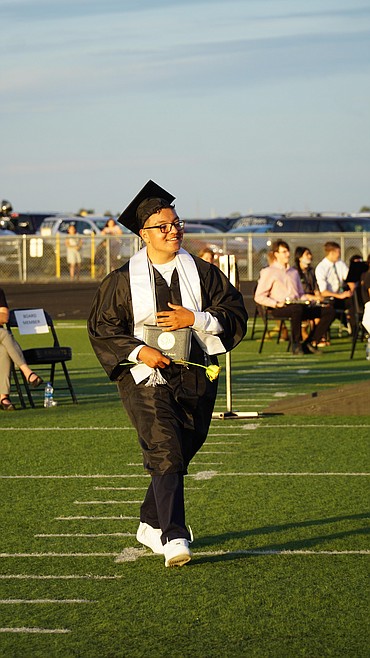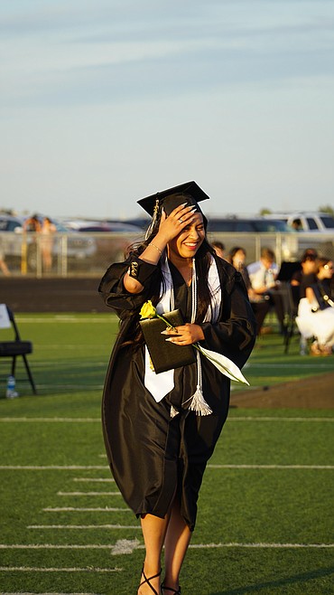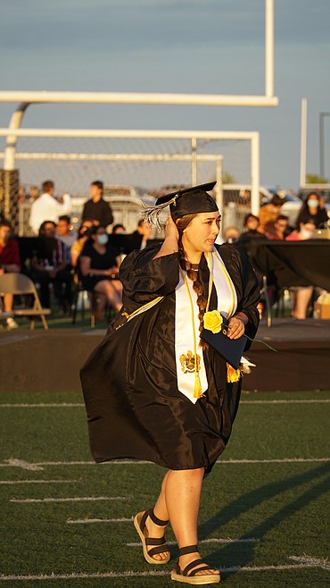A newly-minted Royal High School graduate stops for a photo following graduation Friday.