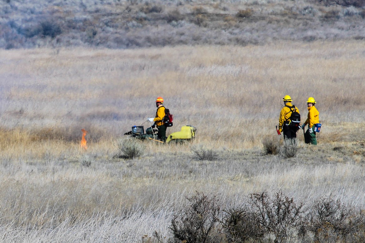 The Washington Department of Fish and Wildlife’s prescribed burn team met Tuesday morning, west of Moses Lake and south of Interstate 90, to burn 266 acres of tall grass and encroaching vegetation.