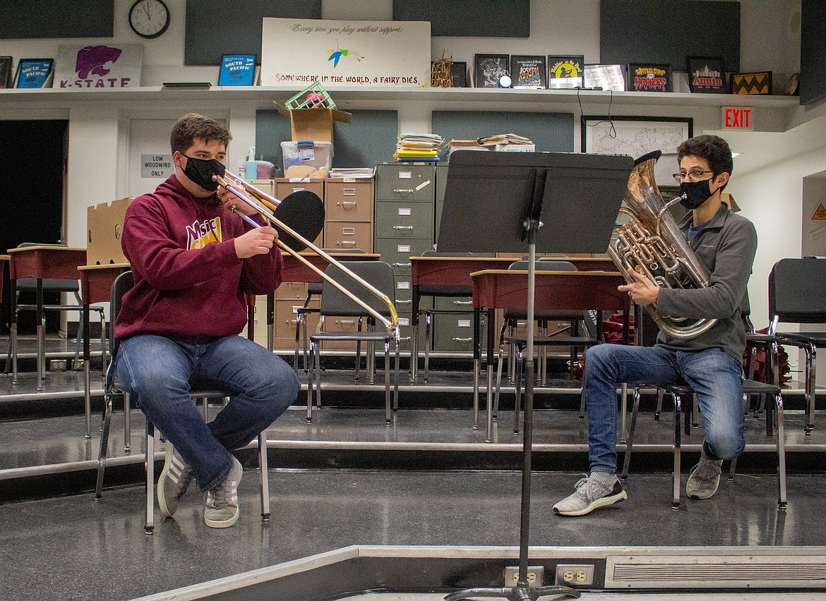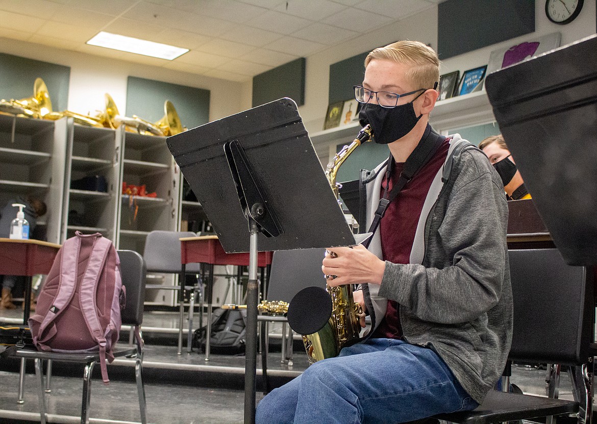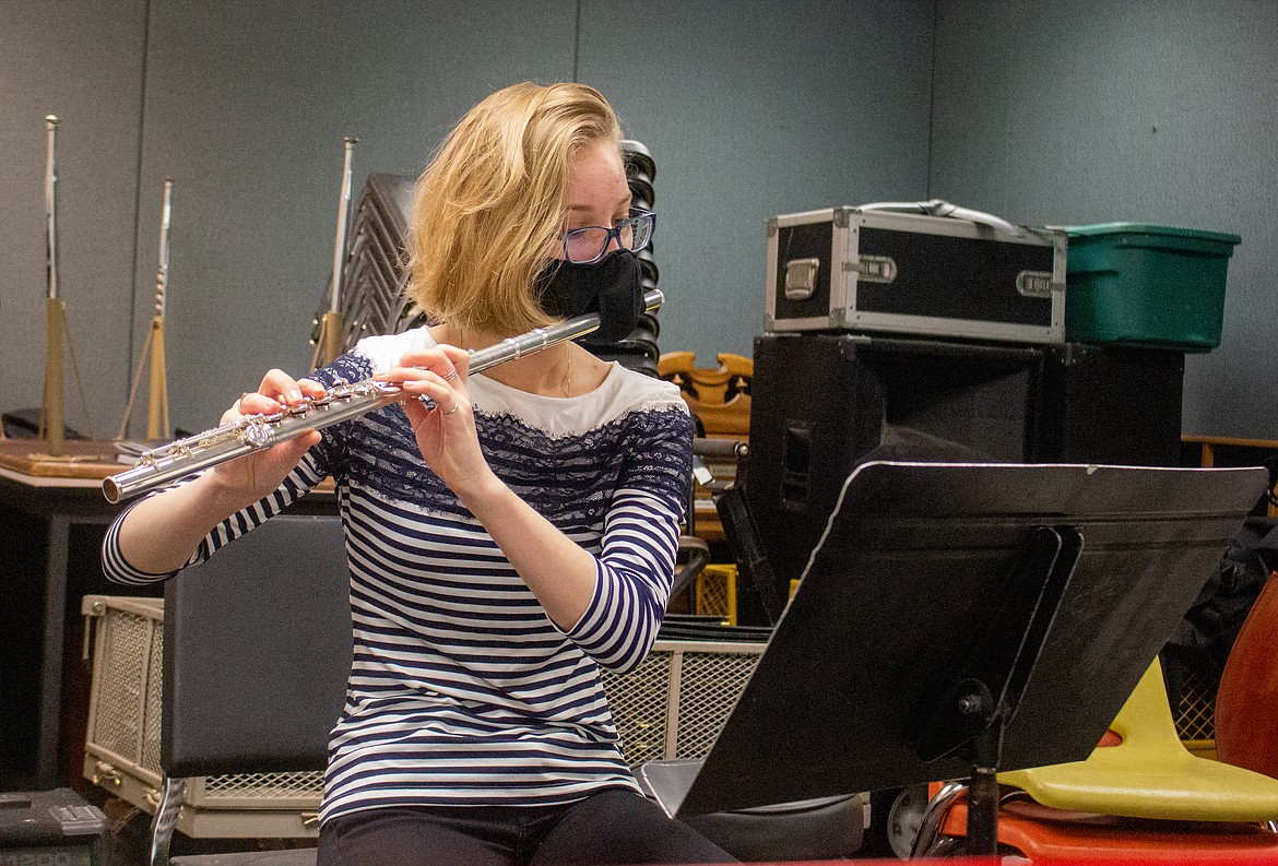 Foryan said it has been nice practicing in person in small groups, but the required musician’s masks can make playing a little challenging. She said the mask tends to get in the way of her mouth and instrument, making things especially tough for a wind instrument player like herself.