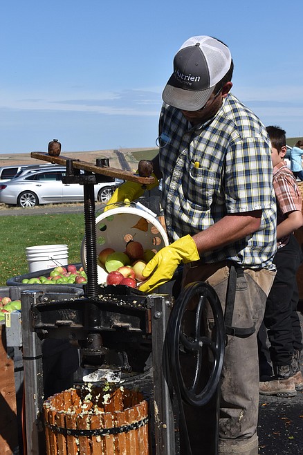 Greg Reimer, a wheat farmer from Ritzville, has run the booth for many years. His dad, Walt, started the booth. Reimer said his dad started the freshly squeezed cider as a hobby because they had some apple trees in their backyard. One year, he decided to bring the cider to a booth at the country auction.