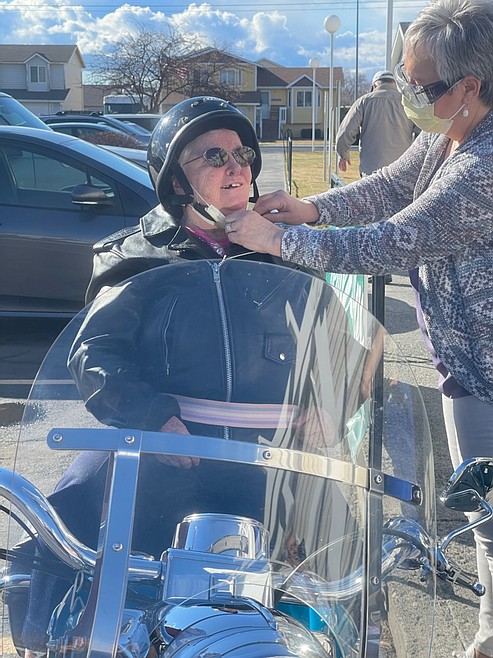 For her 102nd birthday the staff at Monroe House arranged her first motorcycle ride.