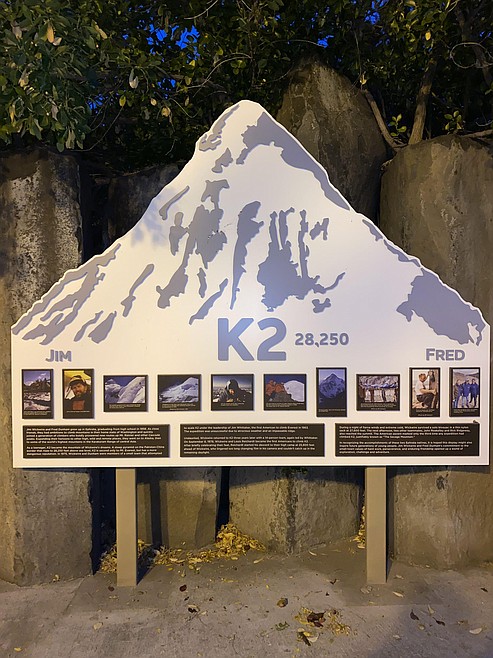 This K2 plaque can be found at Sun Basin Plaza which is also known as Rock Park Plaza, is dedicated to the K2 endevor made by Fred Dunham and Jim Wickwire in 1975. The plaza is located at 32 Basin St NW In Ephrata. Both Dunham and Wickwire grew up in Ephrata.