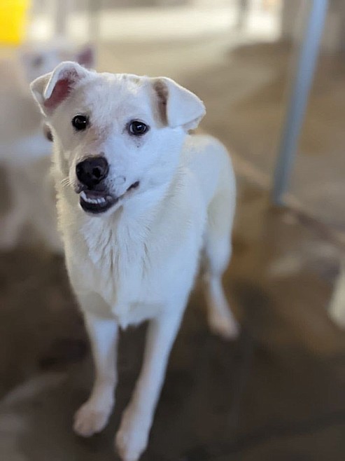 Meet Vesna, a female husky mix about 10 months old. Vesna was surrendered to us with her mother and three littermates, all of whom came in with mange and were not well socialized. She’s friendly and shy and likes toys. She plays well with other dogs her own size or bigger. She’s not very confident being on a leash yet, but she’s working on it.