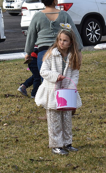 Jacque Rasmussen had brought her children to the hunt since 1991, she said, and now she’s there with her grandchildren, two of whom were Blakely Gayle Van Dyke, 2, and Cora Rasmussen, 6. Both girls were decked out in spring colors, Cora sporting a pair of daisy-shaped deely-boppers on her head.