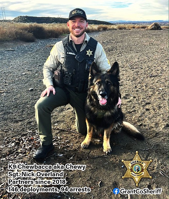 EPHRATA — K-9 Chewbacca has retired from service as of the end of his workday on December 7. Chewy and Sgt. Nick Overland was partnered in 2018 and since then has aided in 146 deployments and 94 arrests, according to an announcement from the Grant County Sheriff’s Office.