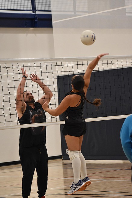 One program offered by Moses Lake Parks, Recreation & Cultural Services is a winter co-ed volleyball league. Participants in this winter’s league enjoy a scrimmage at the Larson Recreation Center on Jan. 15. Aaron Sanchez smiles as he prepares to block the spike made by an opponent. For a full list of recreational opportunities at the new Larson Recreation Center, visit http://bit.ly/3WiHYZQ.
