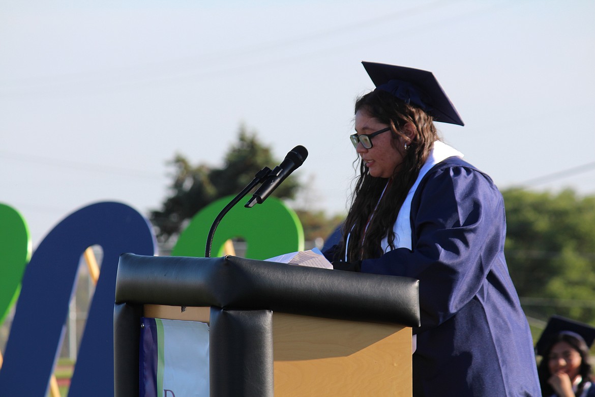 Desert Oasis High School Class of 2023 Valedictorian Michelle Torres addresses the class during graduation ceremonies Monday at Othello High School.