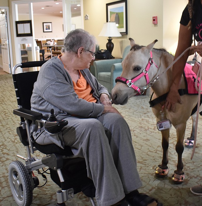 Miniature therapy horse visits Brookdale Hearthstone