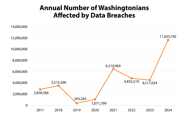 OLYMPIA – Attorney General Bob Ferguson released his annual data breach report Nov. 26 which was at an all-time high at 11.6 million data breach notices being to Washingtonians this year compared to 4.8 million last year. This year is the first time that individual notices sent exceeded the state’s population.