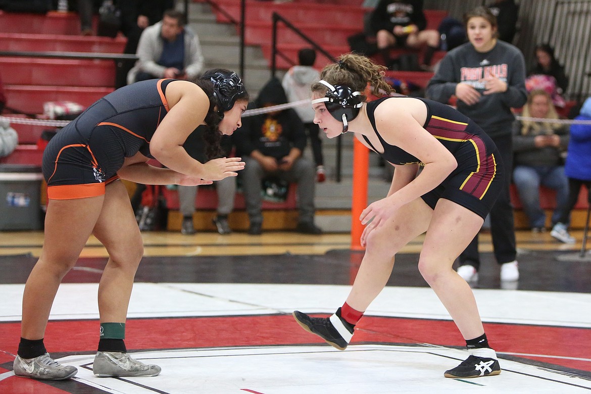 Peralez noted bouts at the 100 and 105-pound classes as standouts from Wednesday’s dual; Gonzalez pinned Eastmont’s McKenna Walters in the first round of the 100-pound matchup, while Town also pinned Eastmont’s Alejandra Sanchez-Rangel in the first round of the 105-pound matchup.