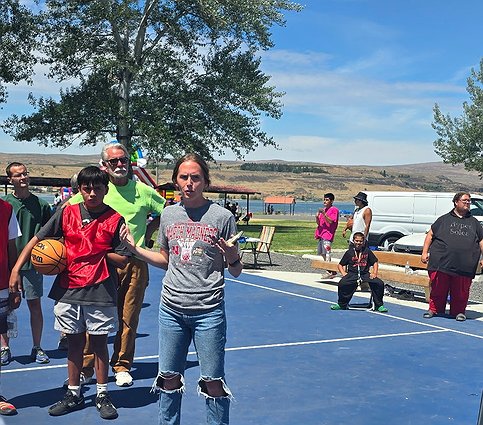 WNBA Champion Lindsey Moore talks to the youth about the importance of living a healthy lifestyle at the 3-on-3 basketball tournament at Soap Lake’s Suds ‘n Sun festival July 5.