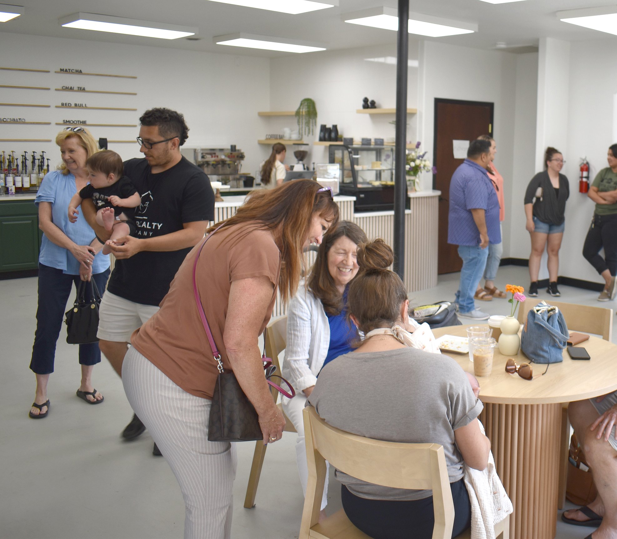 Customers and members of the Moses Lake Chamber of Commerce mingle at Psalms 23 coffee shop, which opened in Moses Lake July 3.