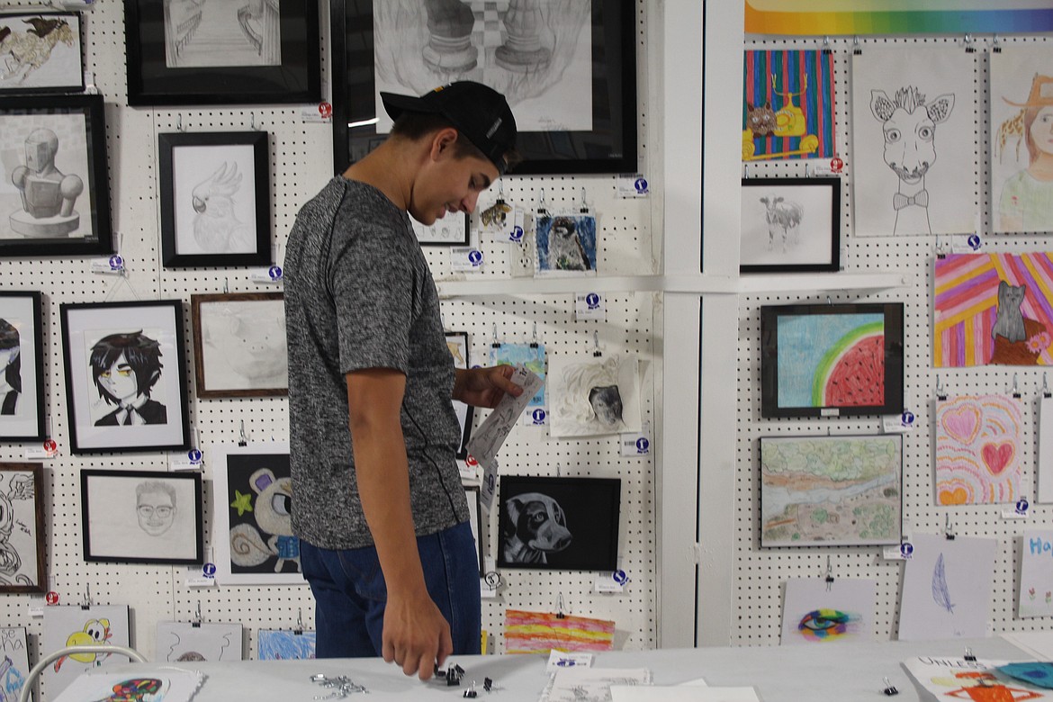 Throughout the fairgrounds, people were setting up equipment, hanging displays and getting ready in general. The setup crew at the arts and crafts booth was rethinking the art installations, the result of running low on just the right kind of hooks.