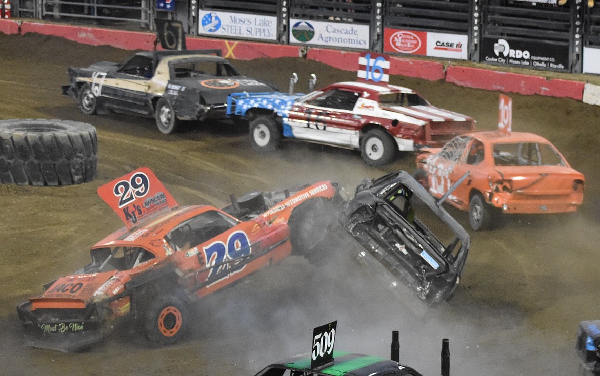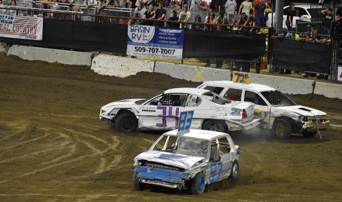 MOSES LAKE — The first night of Miner Services’ Demolition Derby kicked off Tuesday with a variety of racing and knockout events, concluding with a last man standing demo derby with Seth Dompier coming out on top.