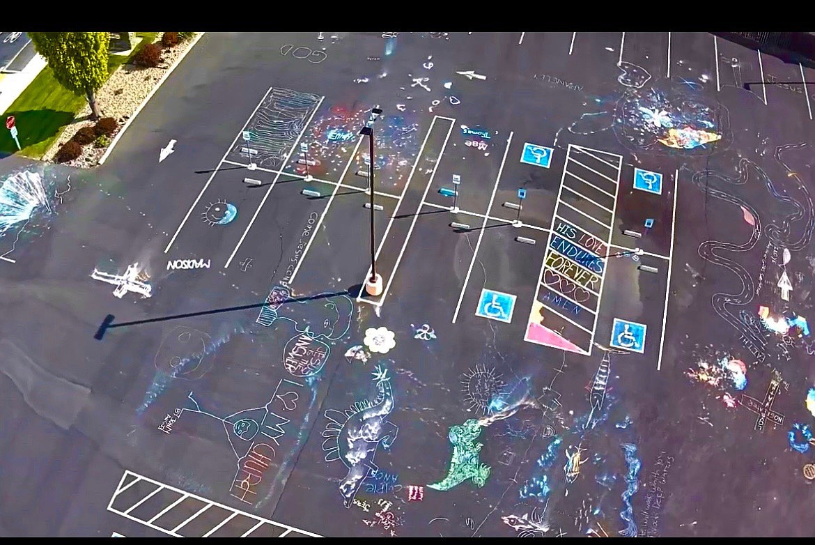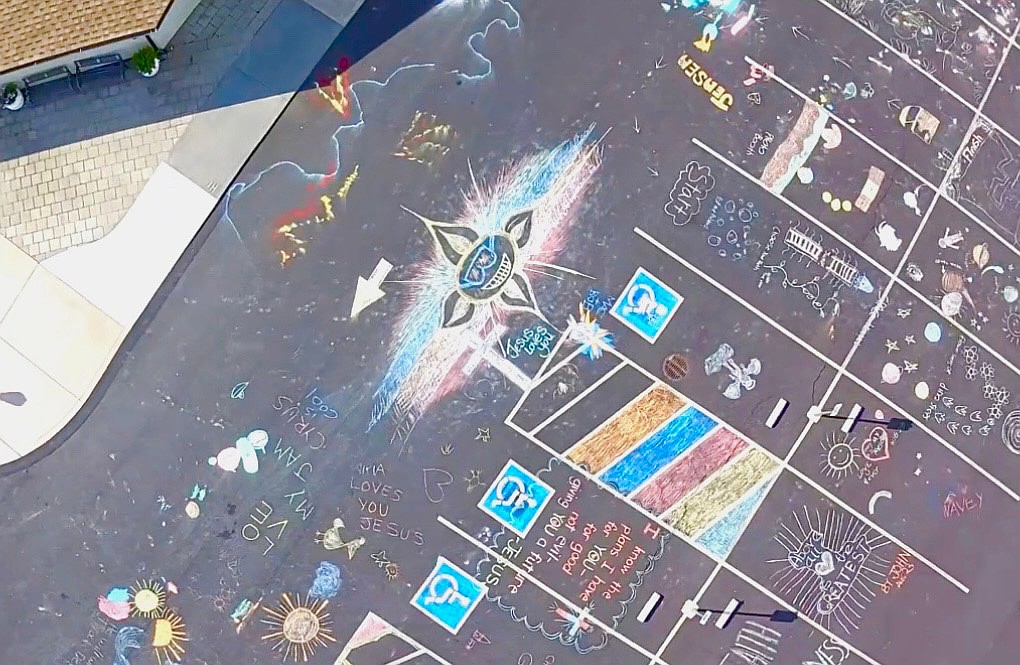 Imagination at work: Children cover church parking lot in chalk art