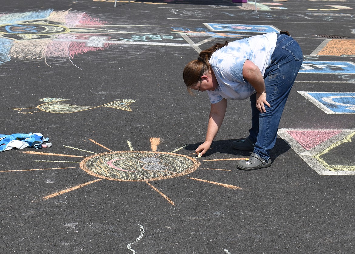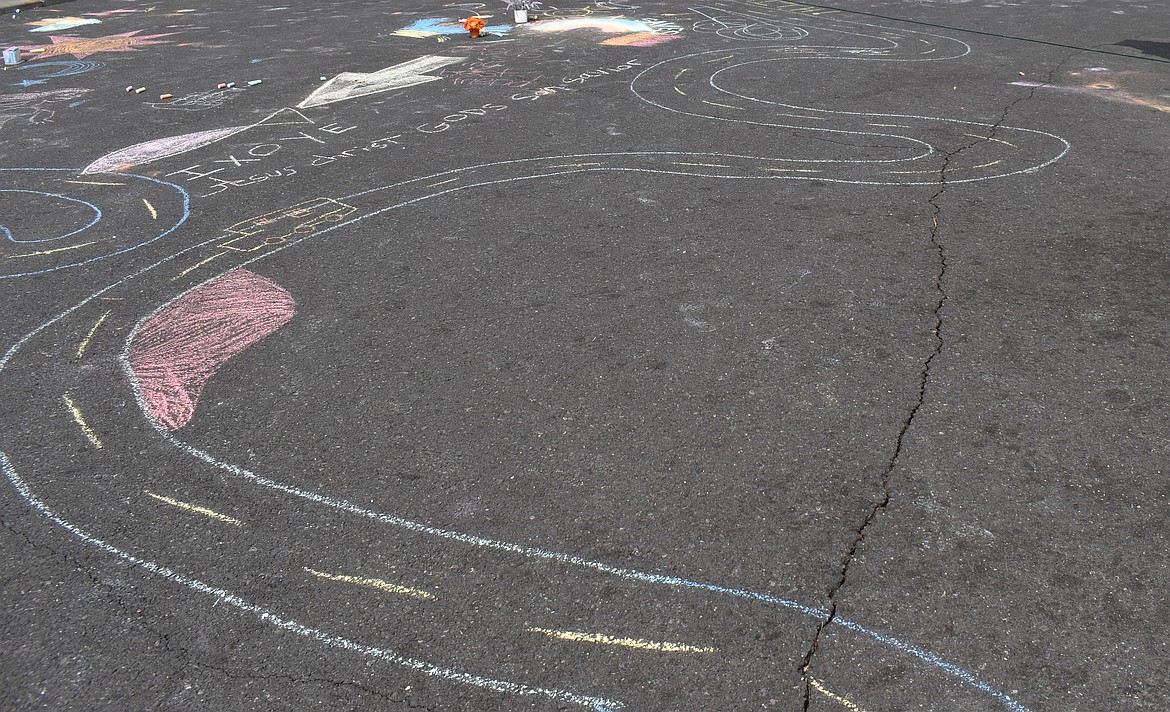 MOSES LAKE — Moses Lake Alliance Church may have had the best-decorated parking lot in town Saturday. Children braved the heat for the Imagination Running Wild event, decorating the lot with drawings, inspirational messages and a long, winding racetrack.