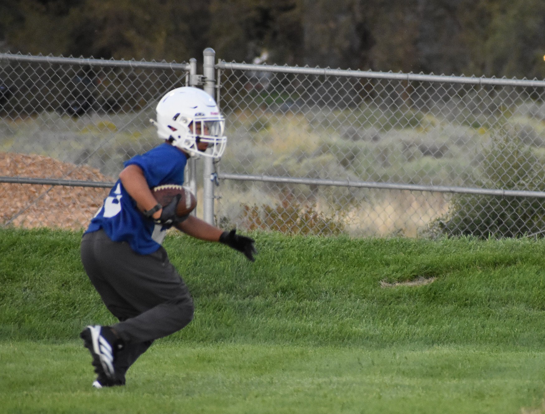 A Soap Lake player runs with the ball during a practice drill last week. The Eagles are preparing for the start of the season next week.
