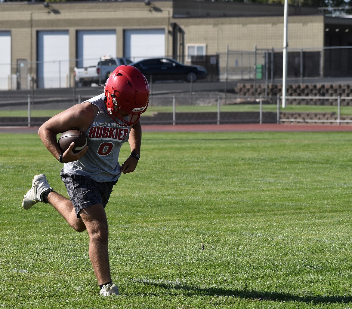 A Huskies wide receiver catches and runs with the ball during practice last Friday. The Huskies are looking forward to another season of football and what their team can offer.