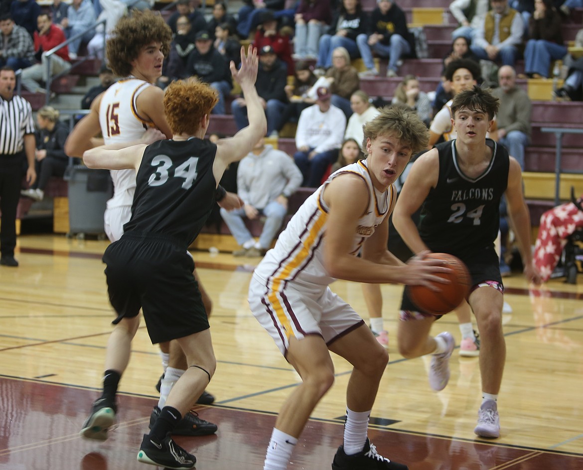 MOSES LAKE — The Moses Lake Mavericks (8-2) defeated the visiting Ridgeline Falcons 74-53 to earn their seventh straight win. Not only did they extend their win streak, but Brady Jay also surpassed 1,000 career points.