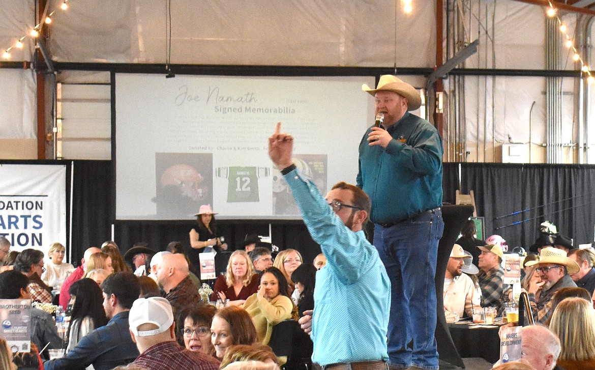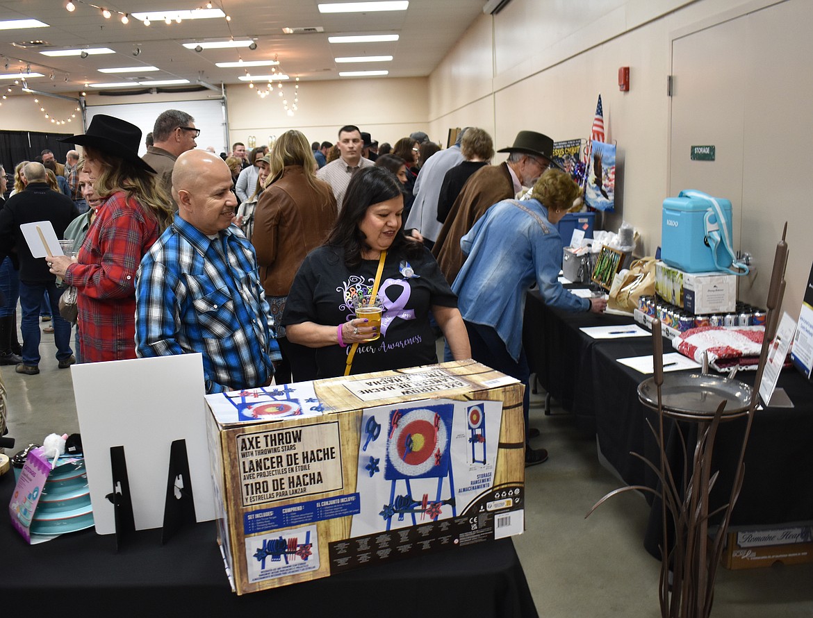 The auction took up two big buildings at the fairgrounds, one for the dinner and live auction and the other for the silent auction items and assorted other fundraisers. As usual, the event had a western theme, and boots, fringed jackets and cowboy hats were everywhere to be seen.