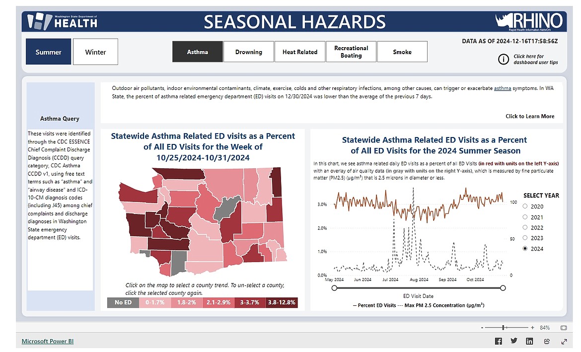 • Additional tabs covering emergency department visits for cold-related illnesses, falls, asthma and carbon monoxide exposures to provide a holistic view of seasonal health risks.