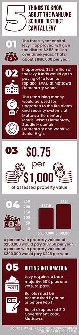 MATTAWA — Wahluke School District voters will decide the fate of a three-year capital projects levy request in a special election Feb. 11. If the levy is approved, it would raise $2.58 million over the three years. The levy will allow the district to be more proactive, says Superintendent Andy Harlow.