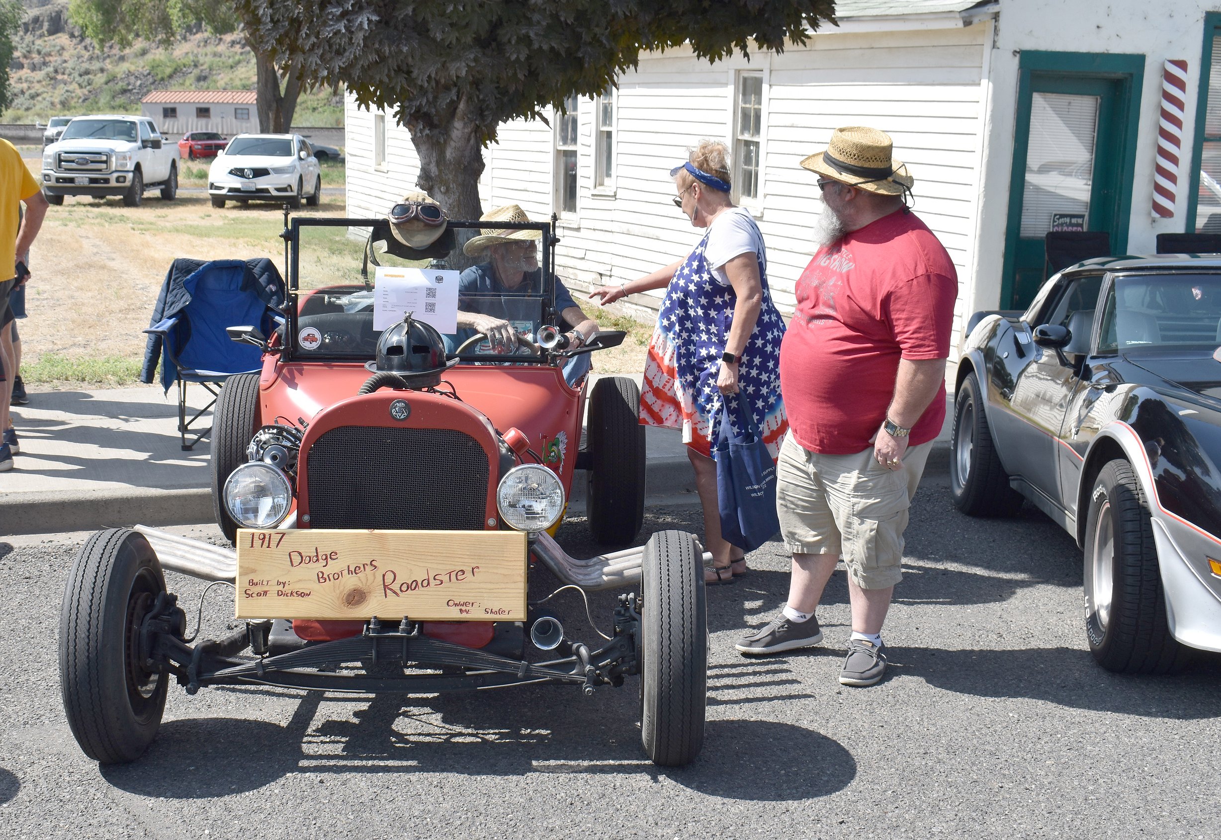 Dave Shafer of Soap Lake shows off his 1917 Dodge Roadster to a couple of attendees at the Little Big Show in Wilson Creek June 14.
