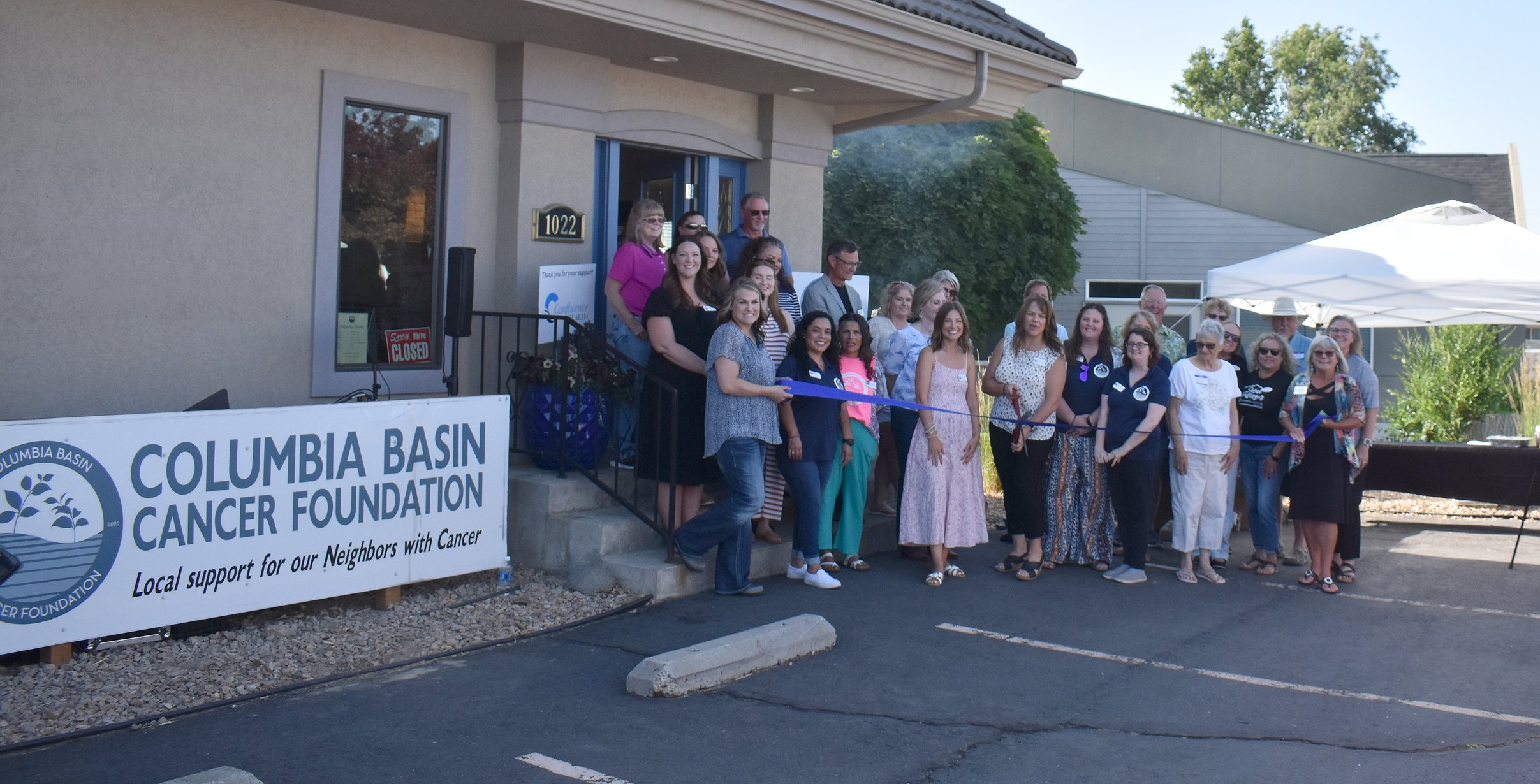 Columbia Basin Cancer Foundation Executive Director Angel Ledesma, surrounded by staff, volunteers and community members, cuts the ribbon at the foundation’s new office at 1022 S. Pioneer Way, Moses Lake June 17.