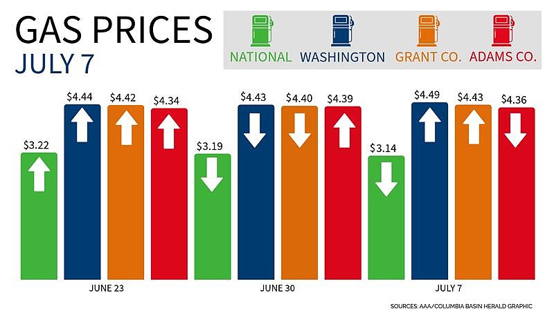 MOSES LAKE – Washington and Grant County average gas prices saw an increase this week. However, national and Adams County saw a decrease in fuel prices, according to AAA.