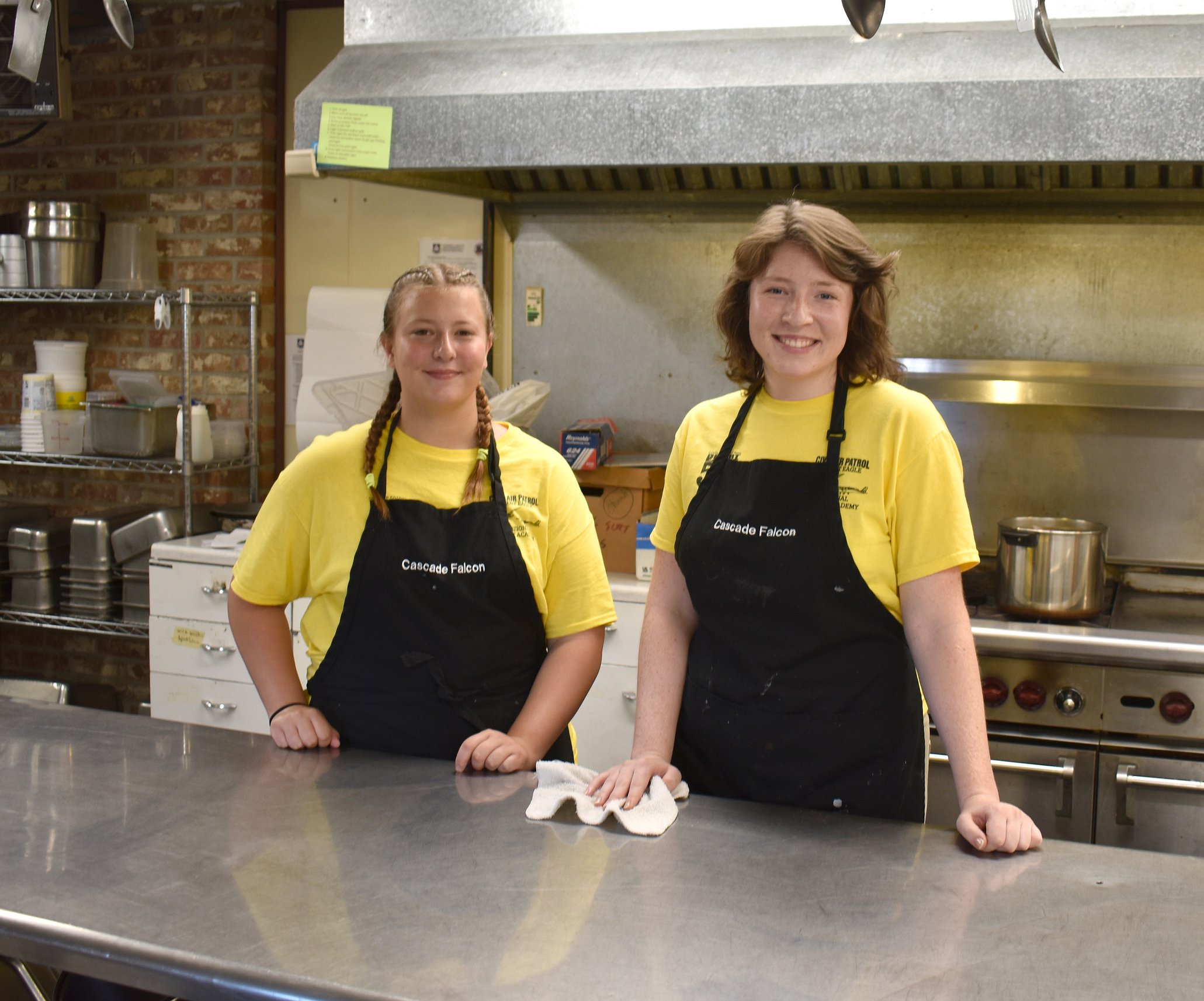 Cadet Master Sgt. Maddie Drake of Ephrata was also content to serve in the background. She was working in the kitchen at the impressive task of keeping 20 teenagers fed. That takes some time and commitment, she said.