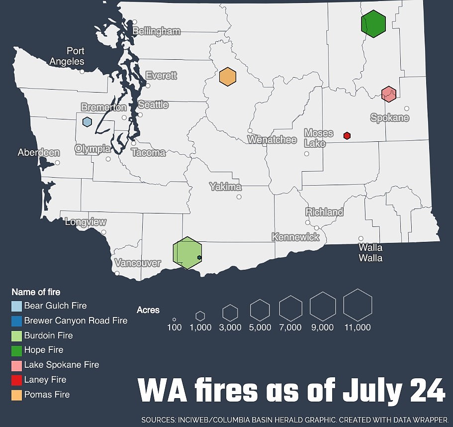 WHITE SALMON – The Burdoin Fire, which ignited on July 18 in the southern border of Washington state, has rapidly consumed more than 11,000 acres and remains only 13% contained as of Thursday afternoon. State officials have called for increased vigilance among residents.